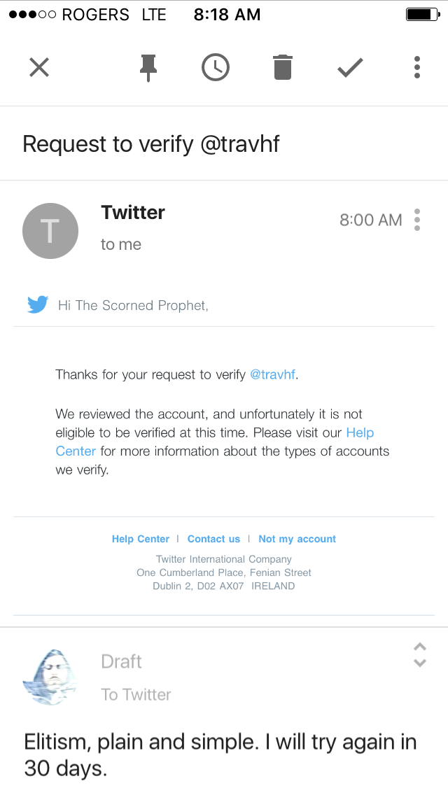 I have a Twitter account @travhf which I have had for a long time, I started posting comments on articles concerning the end times. When I search for a keyword in my post with the account that created the poster appears.